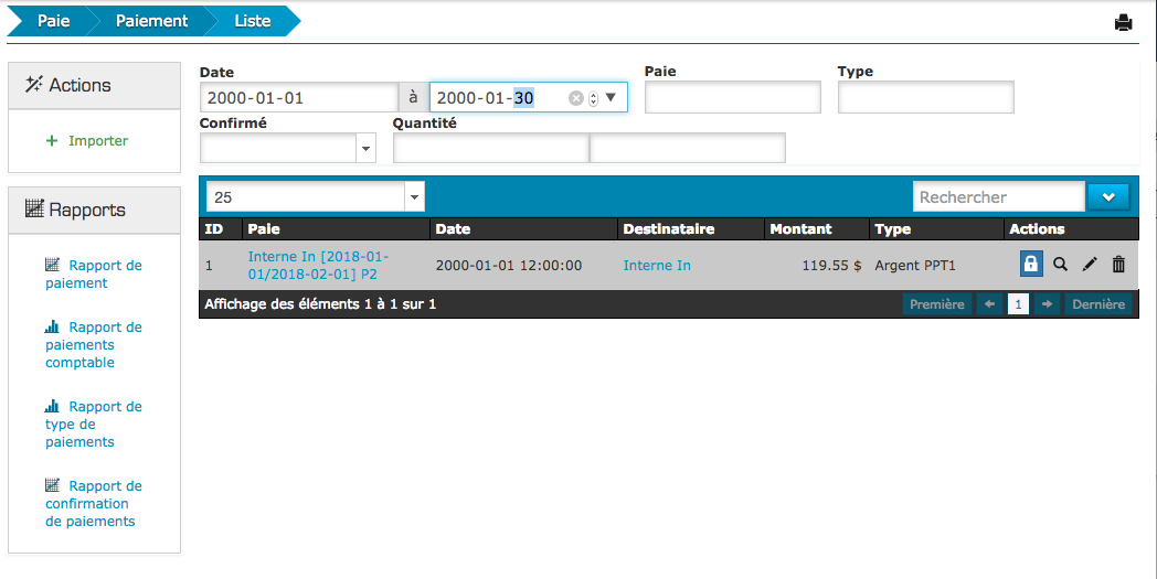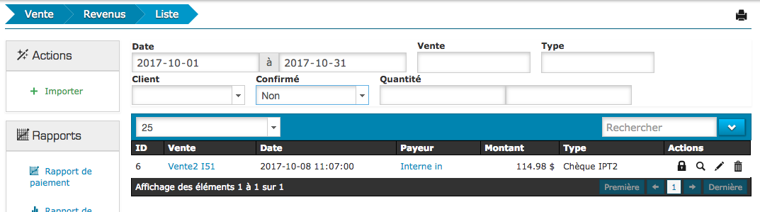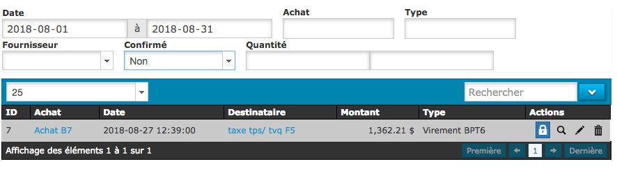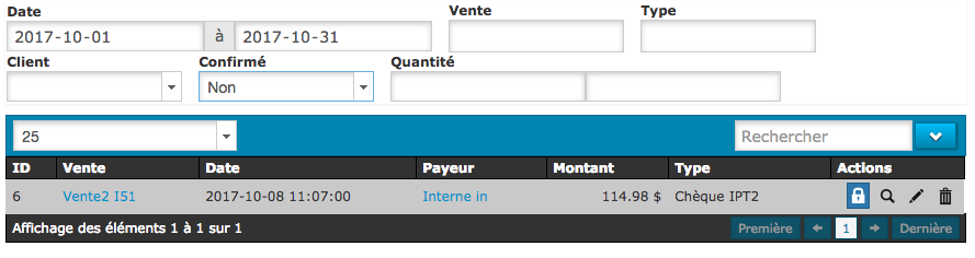 3. Sous onglet « confirmé », vous pouvez sélectionnez « non » afin de voir seulement les paiements qui ne sont toujours pas confirmez