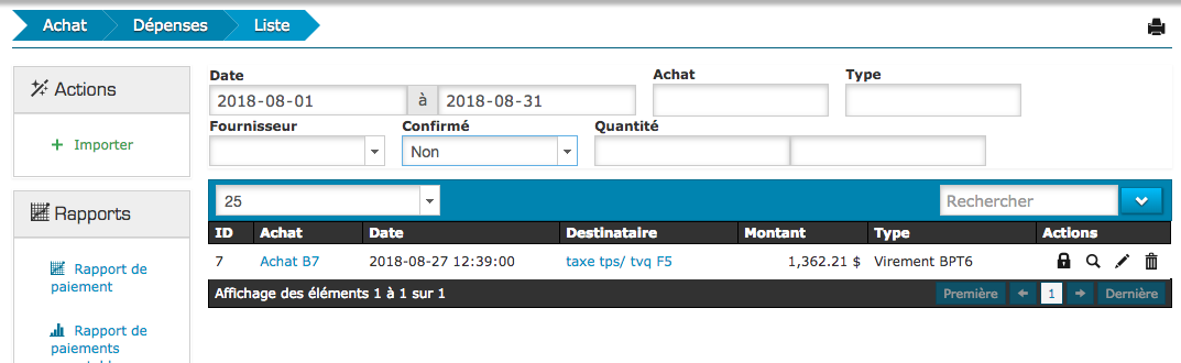 Après avoir confirmez les dépôts de ventes, vous devez confirmer que vos dépenses reliés aux achats qui se retrouvent sur votre relevé bancaire.