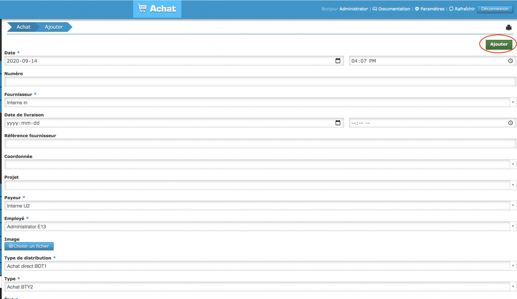 L’ajout d’un nouvel achat consiste à ajouter un achat de manière rapide et simple.