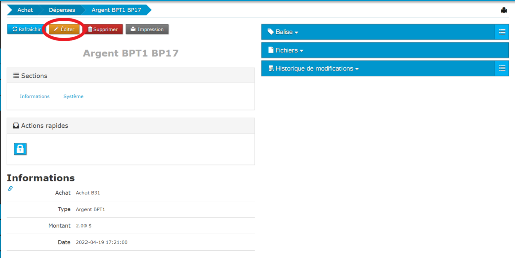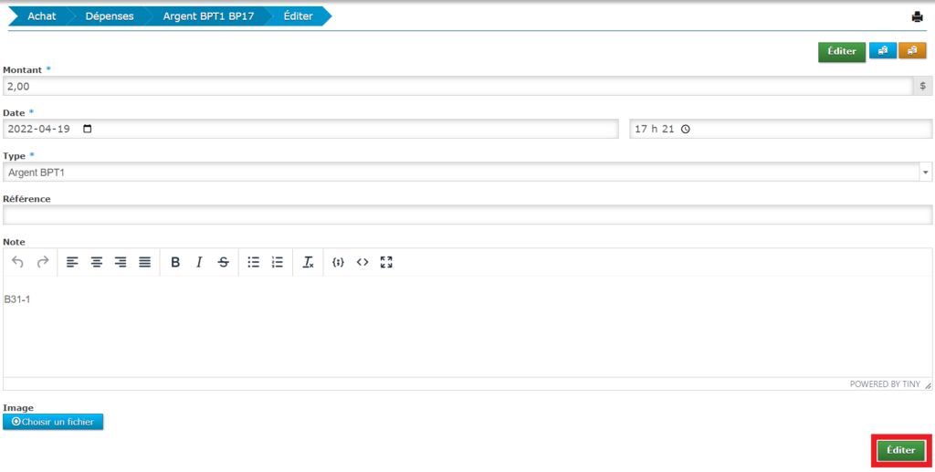 Une fois que vous êtes sur la page de votre paiement à éditer, cliquez sur le bouton « Éditer ». Celui-ci est situé au haut de la page.