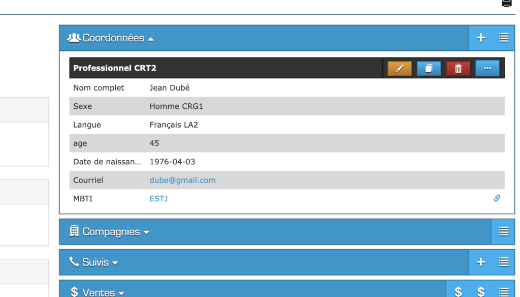 Lorsque vous aurez atteint le profil du client en question, cliquez sur la boîte bleue « Coordonnées ».