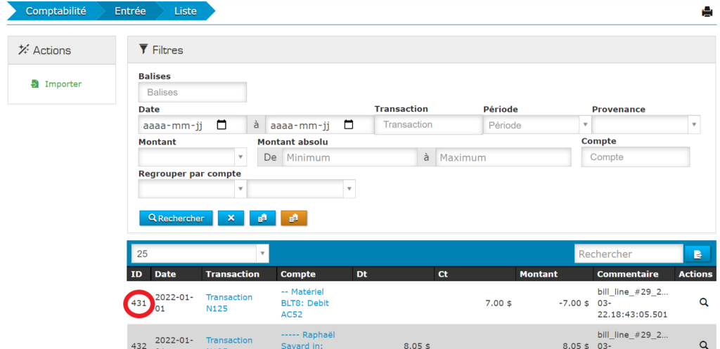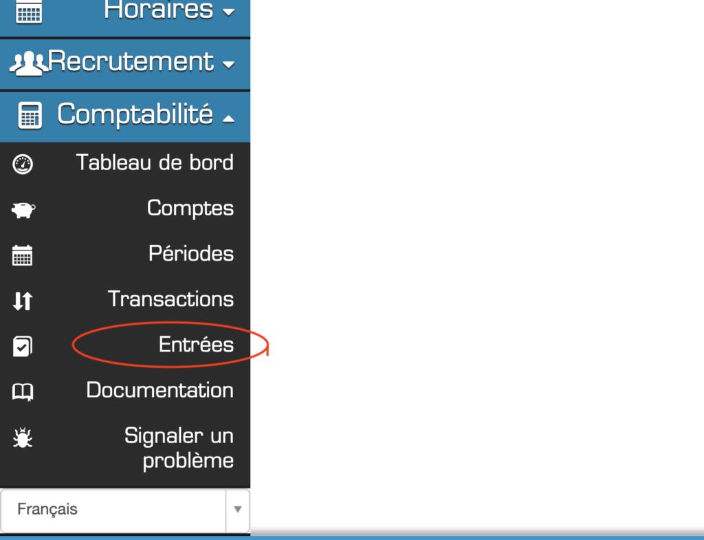 À partir de la barre de menu, cliquez sur la section « Entrées » pour ouvrir la page des entrées.