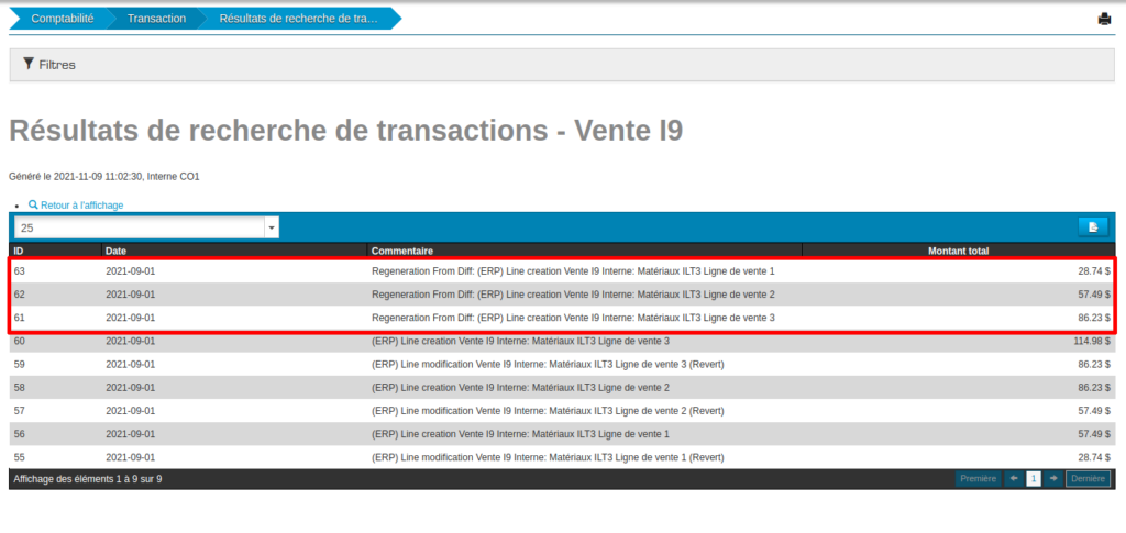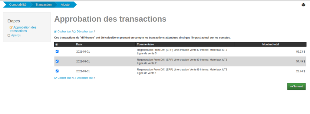 Maintenant que l’on sait comment voir les transactions atttendues, nous sommes en mesure de déterminer si les transactions différentielles qui seront générées sont bonnes.