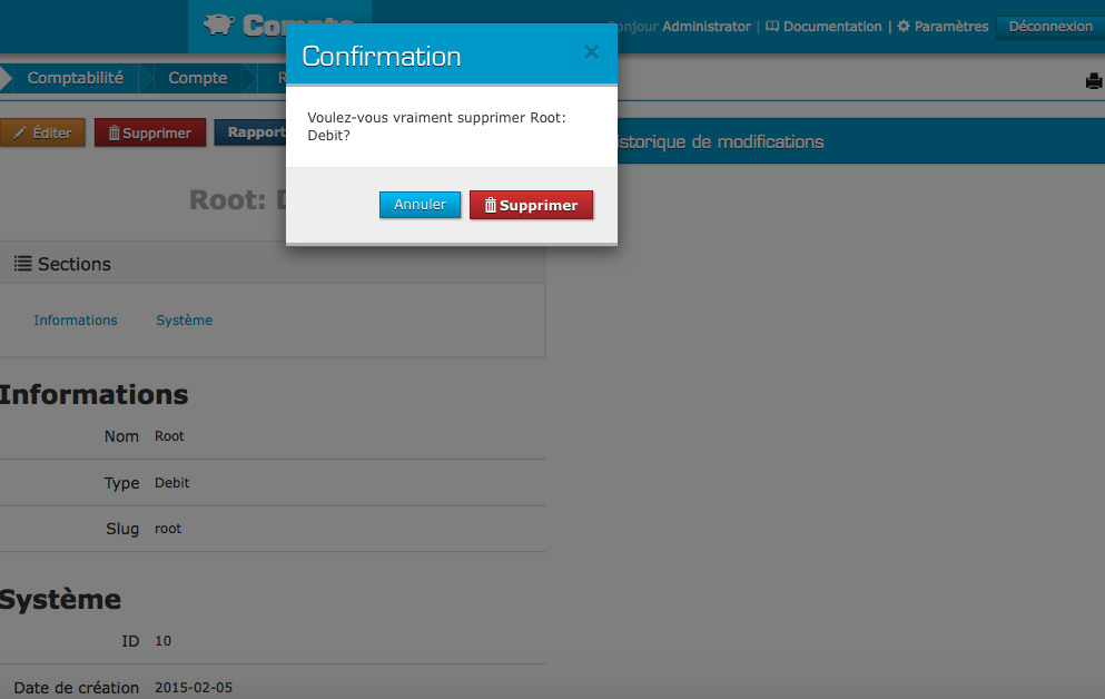 Cliquez sur «supprimer»