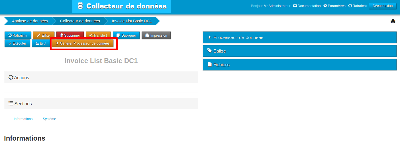 Permet de générer (créer) un processeur de données (avec des champs pré-remplis par les paramètres du collecteur de données) et aussi du même coup les associer ensemble, en un seul clic!