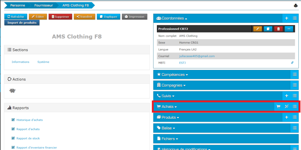 L’ajout d’un achat à partir d’un fournisseur consiste à sélectionner un fournisseur pour y ajouter un achat au lieu d’ajouter un achat et par la suite y ajouter un fournisseur.