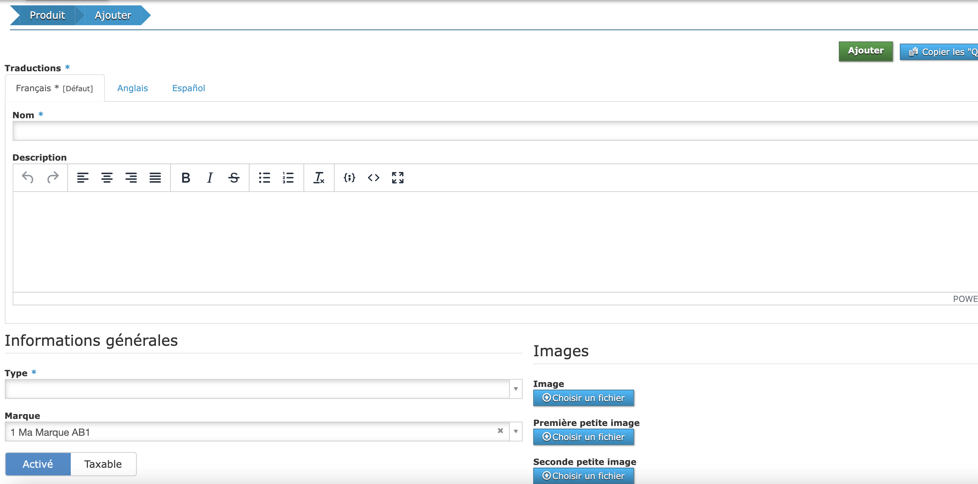 Possibilité d’ajouter jusqu’à quatre images pour un produit.