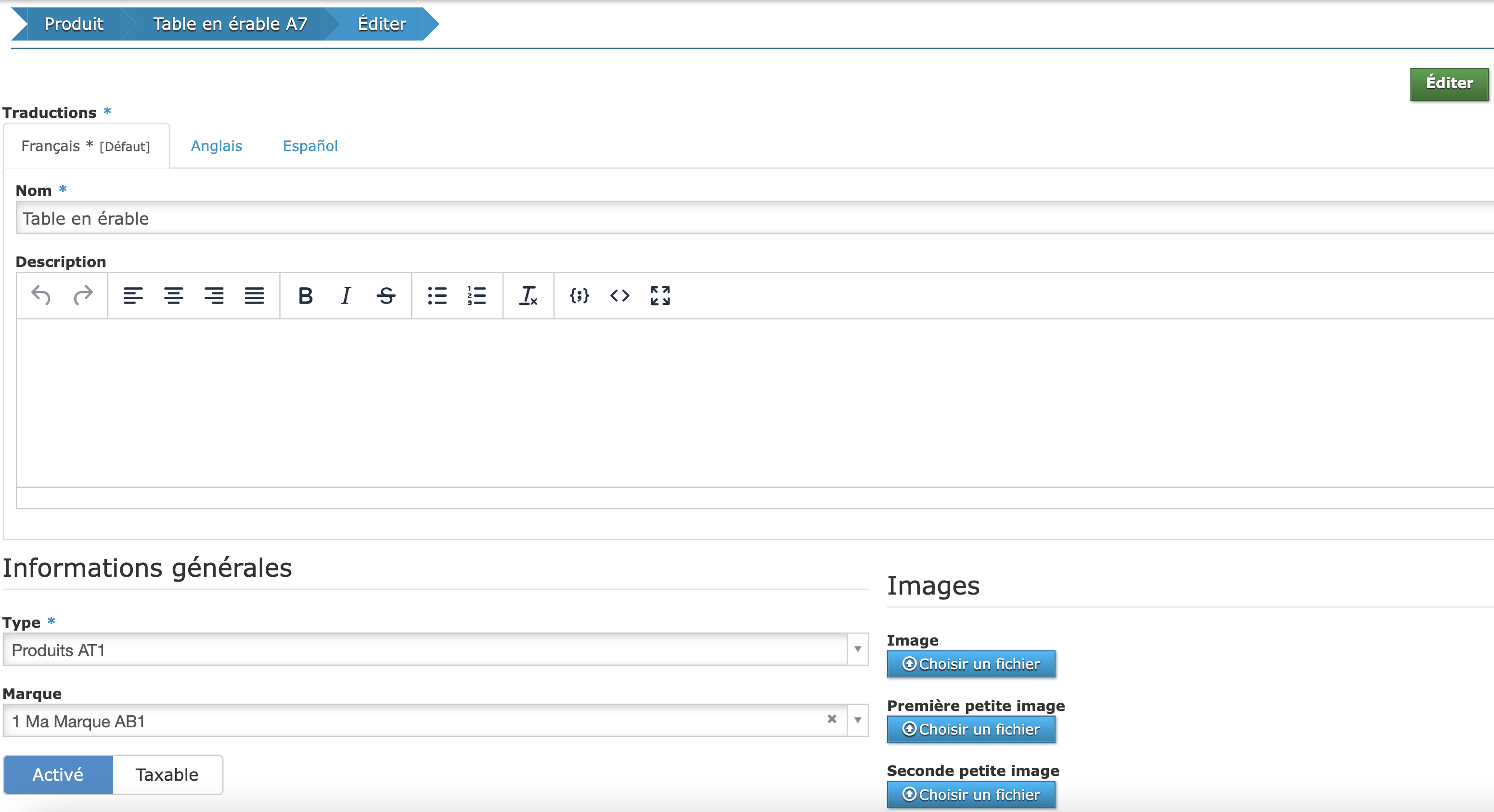 Lorsque la page du produit en question sera affichée à l’écran, cliquez sur « Éditer » qui se trouve au haut de la page.