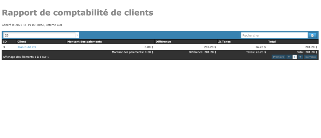 Le rapport de comptabilité des clients permet aux utilisateurs du logiciel PHPReaction de consulter la valeur totale des ventes associées à chaque client.