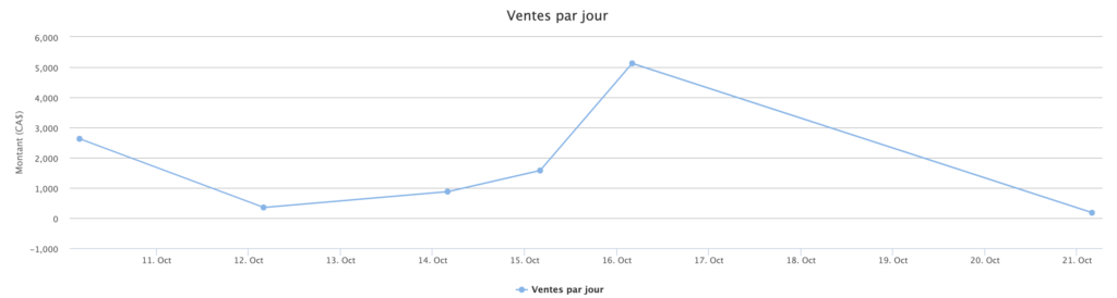 Les tableaux analytiques permettent aux utilisateurs du logiciel PHPReaction de voir toutes les informations liées à la performance des ventes : le nombre de clients, le panier d’achats moyen, le total des ventes, et plus.