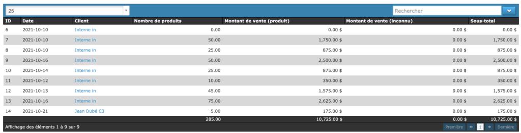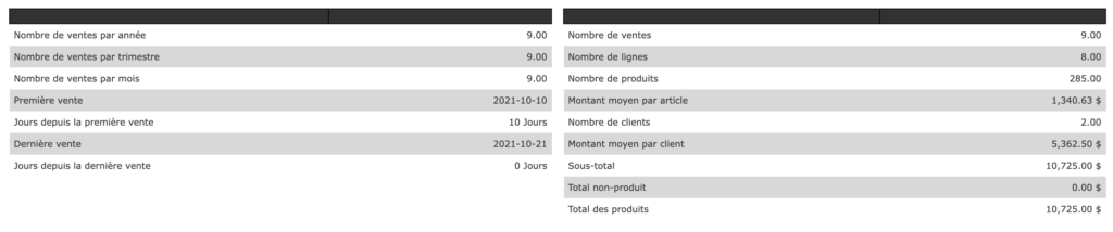 Beaucoup d’informations reliées au calcul des chiffres de ventes sont affichées ce qui facilite leur analyse