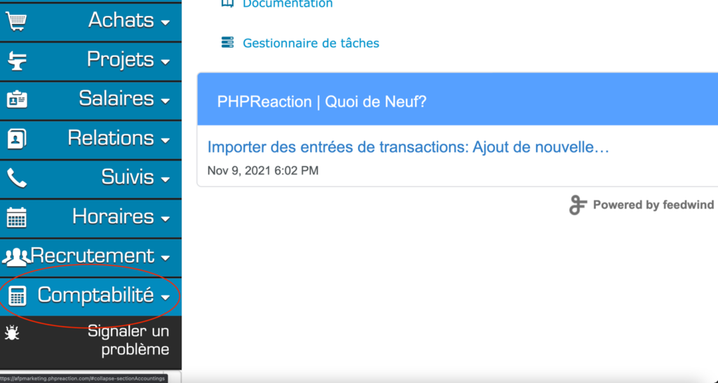 Cliquez sur « Comptabilité »
