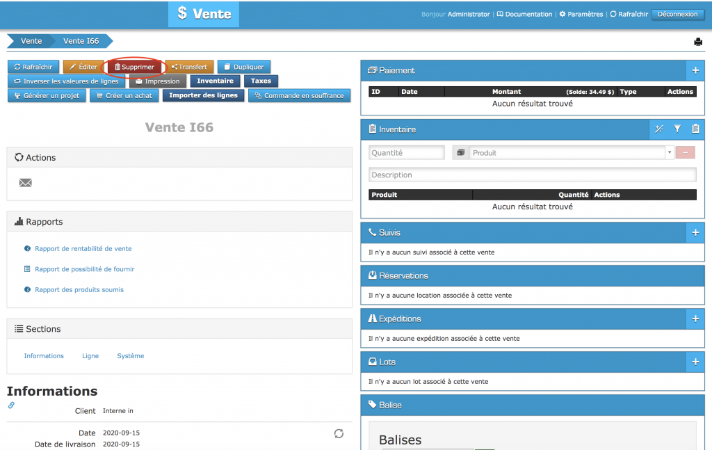- Comment supprimer la vente