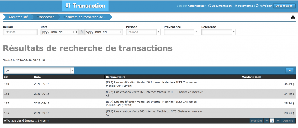 Vous avez maintenant complété la suppression de la vente. Automatiquement, le logiciel ira faire un » Revert » pour supprimer la transaction du journal d’entrée. Cela consiste à inverser les comptes débits / crédits .