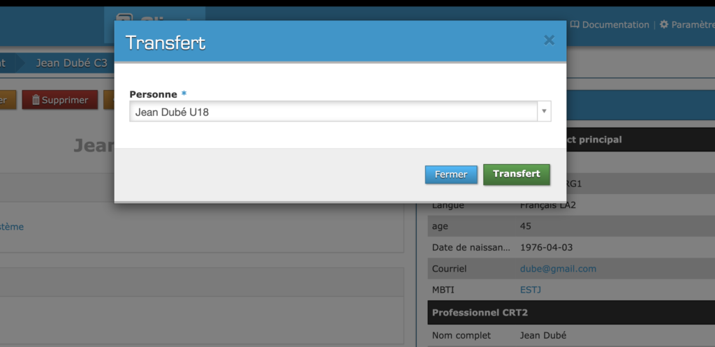 Le logiciel PHPReaction permet aux utilisateurs de transférer les coordonnées d’un compte client vers un autre. Cette action peut s’avérer utile dans le cas où un utilisateur a rempli les coordonnés d’un client dans le mauvais compte. Il suffit de transférer ces données vers le bon compte.