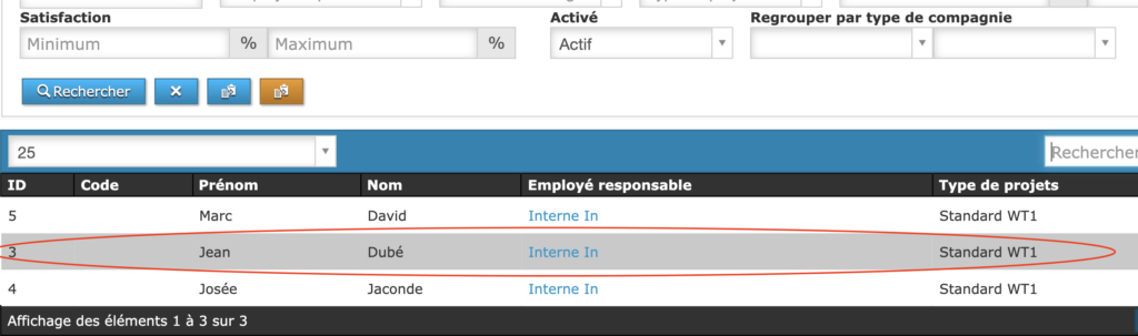 Dans la section des clients, sélectionnez le profil du client pour lequel vous souhaitez transférer des données. Vous pouvez simplifier votre recherche en utilisant l’option de recherche rapide, ou encore, les filtres de recherche avancée.