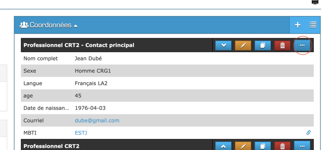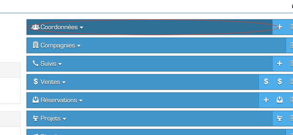 Lorsque vous aurez atteint le profil du client en question, cliquez sur la boîte bleue « Coordonnées ».