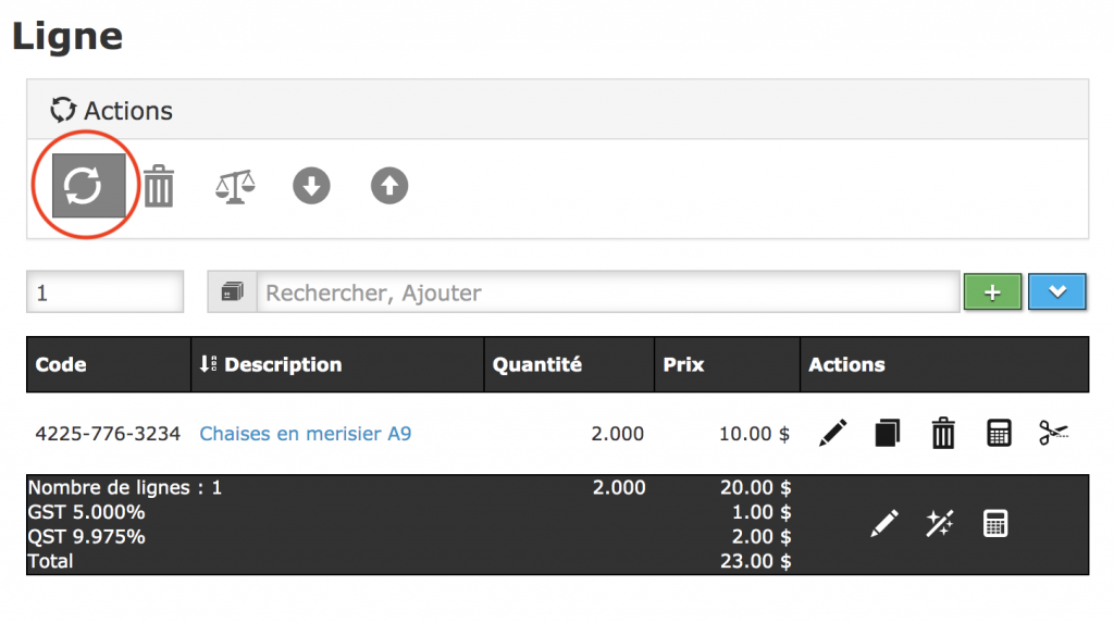 Afin d’actualiser, cliquez sur le bouton d’actualisation en haut des lignes