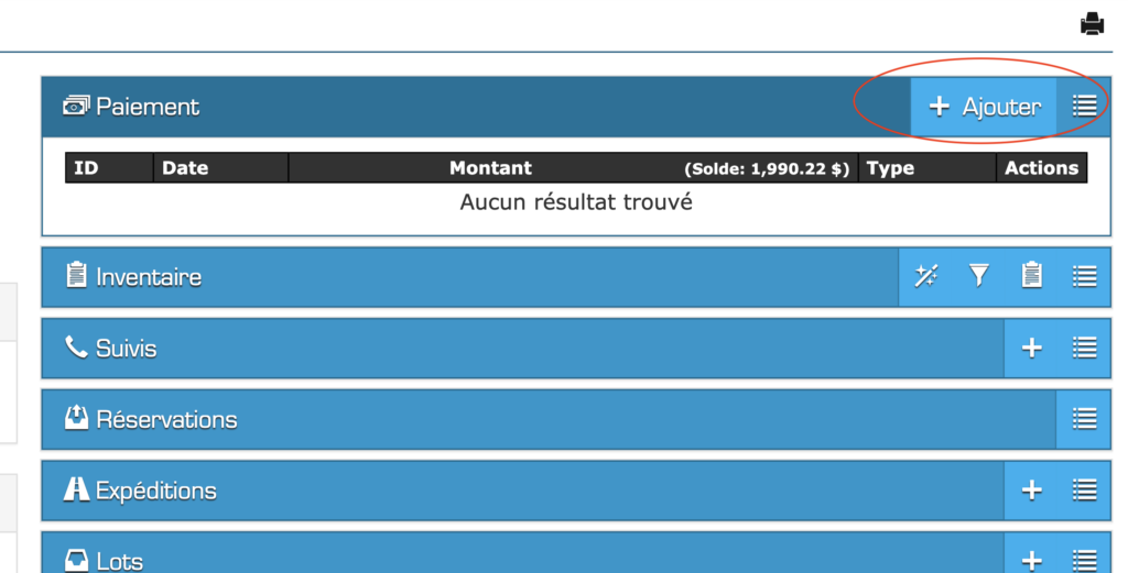 Permet l’ajout d’un nouveau paiement à partir de l’affichage de la vente, rapidité d’accès, efficacité et réduction du risque d’erreurs.