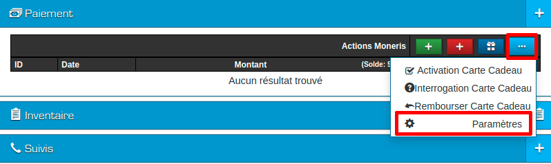 Étape #5 : Si vous avez entré les bonnes informations, vous devriez maintenant pouvoir utiliser les boutons de couleur « Moneris » au dessus des paiements, précédement observés, à partir d’une vente.