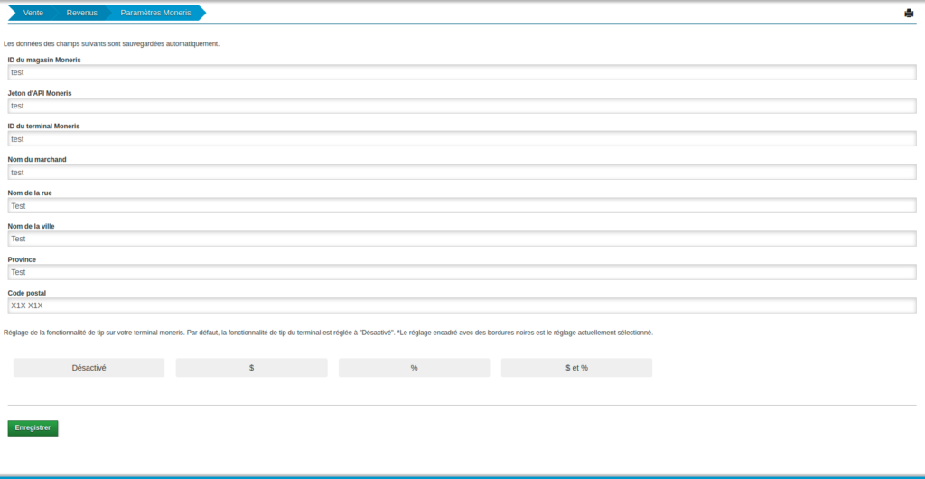Configuration des paramètres Moneris dans l'ERP