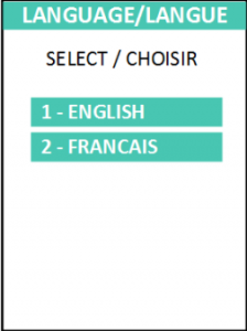 Étape #4 : Lorsque le PINpad allumera pour la première fois (ce qui devrait être le cas), il faudra le configurer. La première page de configuration sera celle des langues et devrait ressembler à l’image côte à cet énoncé.