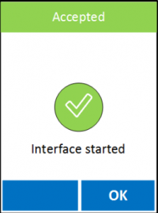 Étape #14 : Vous devriez arriver sur un écran vous indiquant « Interface started » dans le cas où tout a bien fonctionné, ou « Failed » si un problème quelconque est survenu.