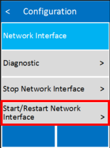 - Une fois que la page « Configuration », cliquez sur l’option « Start/Restart Network Interface ».
