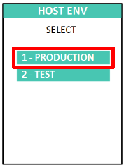 Étape #7 : Vous devriez ensuite arriver sur l’écan « HOST ENV » comportant 2 options : « PRODUCTION » et « TEST ».