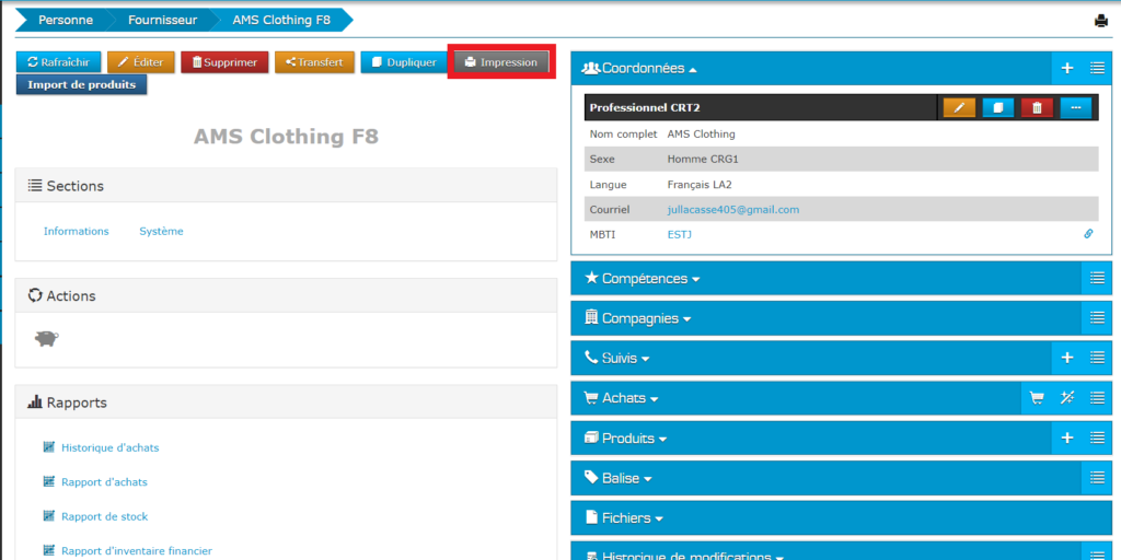 Une fois que vous êtes sur la page des fournisseurs, sélectionnez le fournisseur que vous désirez imprimer une enveloppe en cliquant sur celui-ci.