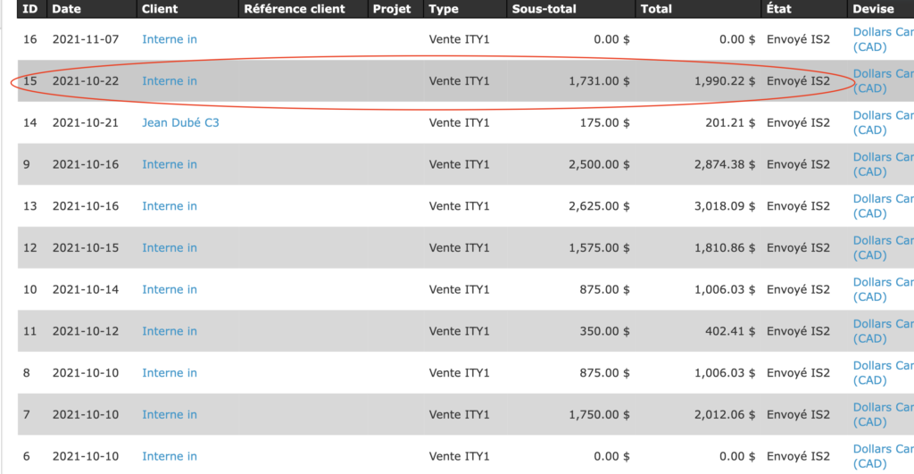 À partir de la page des ventes, consultez la liste des ventes et sélectionnez la vente que vous souhaitez imprimer. Vous pouvez simplifier votre recherche en utilisant l’option de recherche rapide, ou encore, les filtres de recherche avancée.