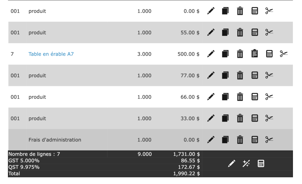 Lorsque la vente s’affichera à l’écran, cliquez sur la petite balance qui se trouve dans la boîte d’actions au bas de la page, dans la section « Ligne ».