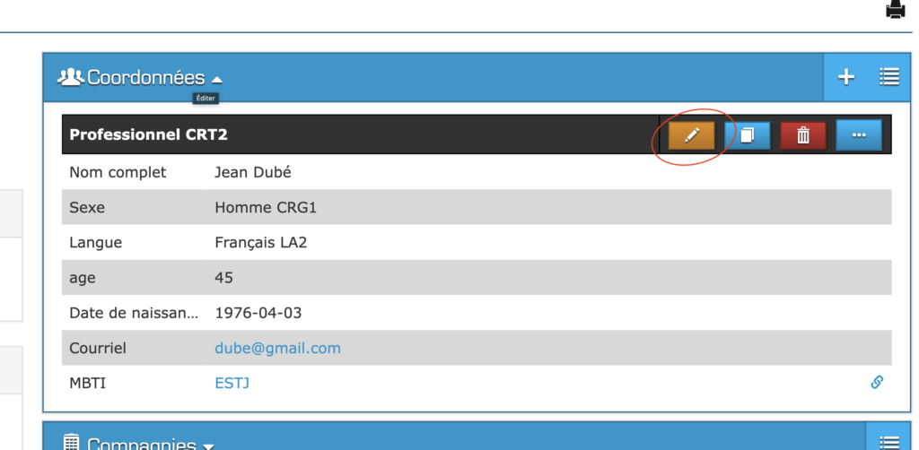 Cliquez sur le bouton jaune avec un petit crayon afin de modifier les coordonnées du client en question.