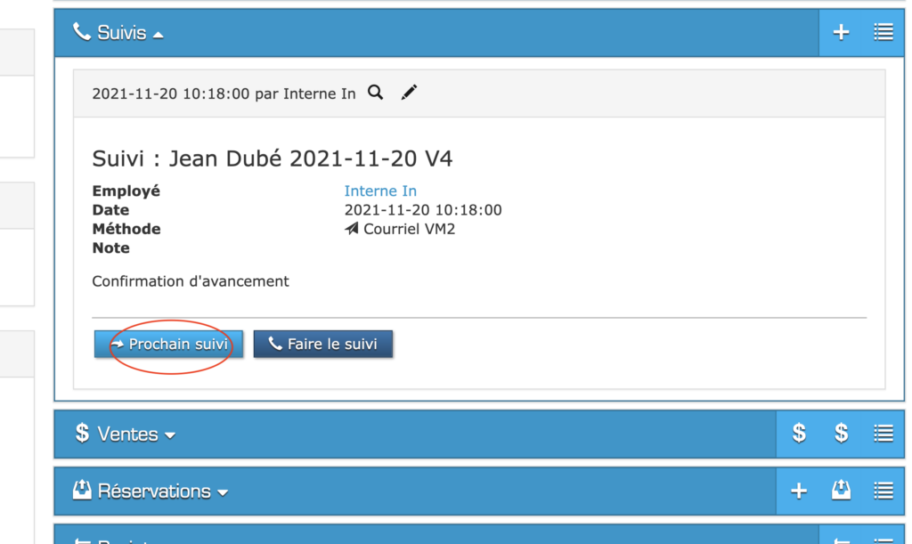 Étape 3 : Cliquez sur le bouton « Prochain suivi »