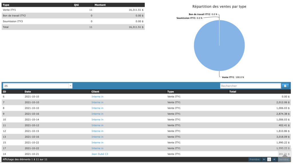 Le rapport par type est un outil qui permet aux utilisateurs du logiciel PHPReaction d’analyser la répartition des différents types de vente : bons de commande, soumissions et ventes.