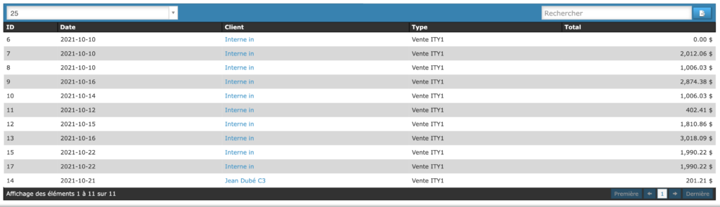 La liste déroulante affiche toutes les ventes.