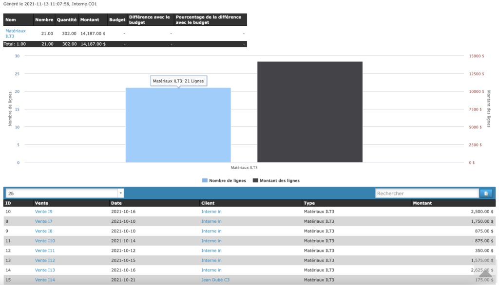 Le rapport par type de ligne est un outil qui permet aux utilisateurs du logiciel PHPReaction d’analyser la performance de chaque type de ligne des ventes. Par exemple, l’utilisateur peut consulter le total des revenus associés aux matériaux et comparer celui-ci avec le total des revenus associés au transport.