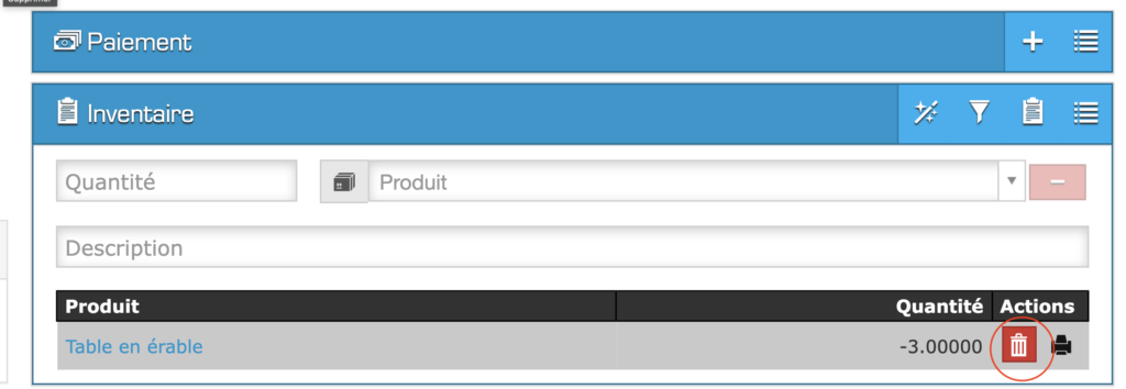 Le logiciel PHPReaction permet aux utilisateurs de supprimer une ligne de produit à même le volet inventaire.