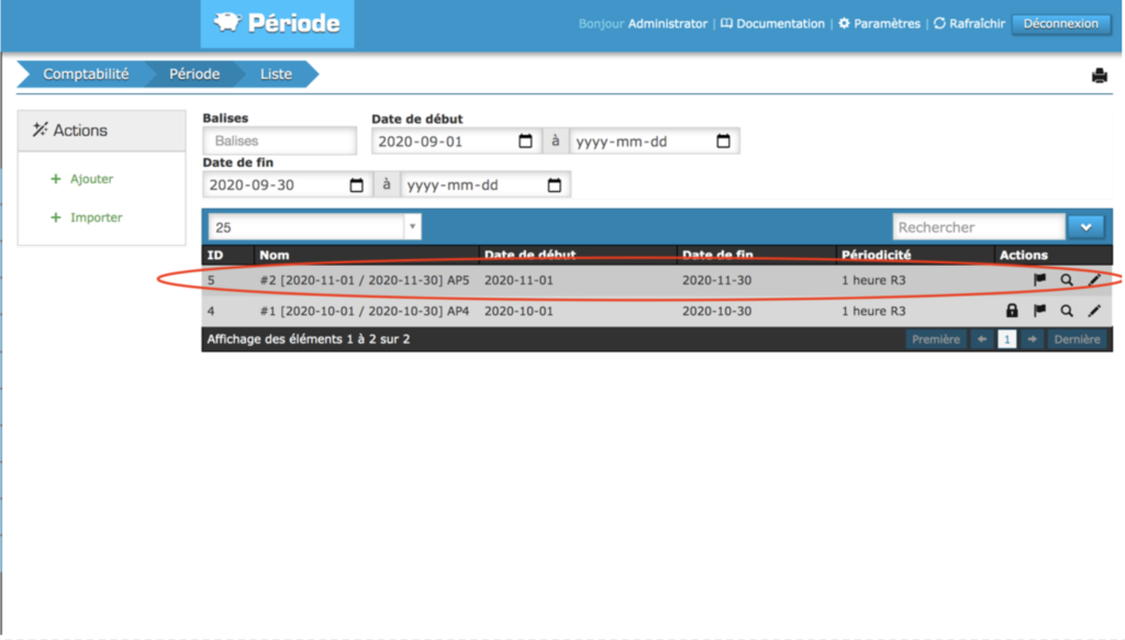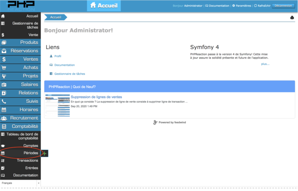 1) À partir de la page d’accueil du logiciel PHPReaction, appuyez sur l’onglet intitulé « périodes ».