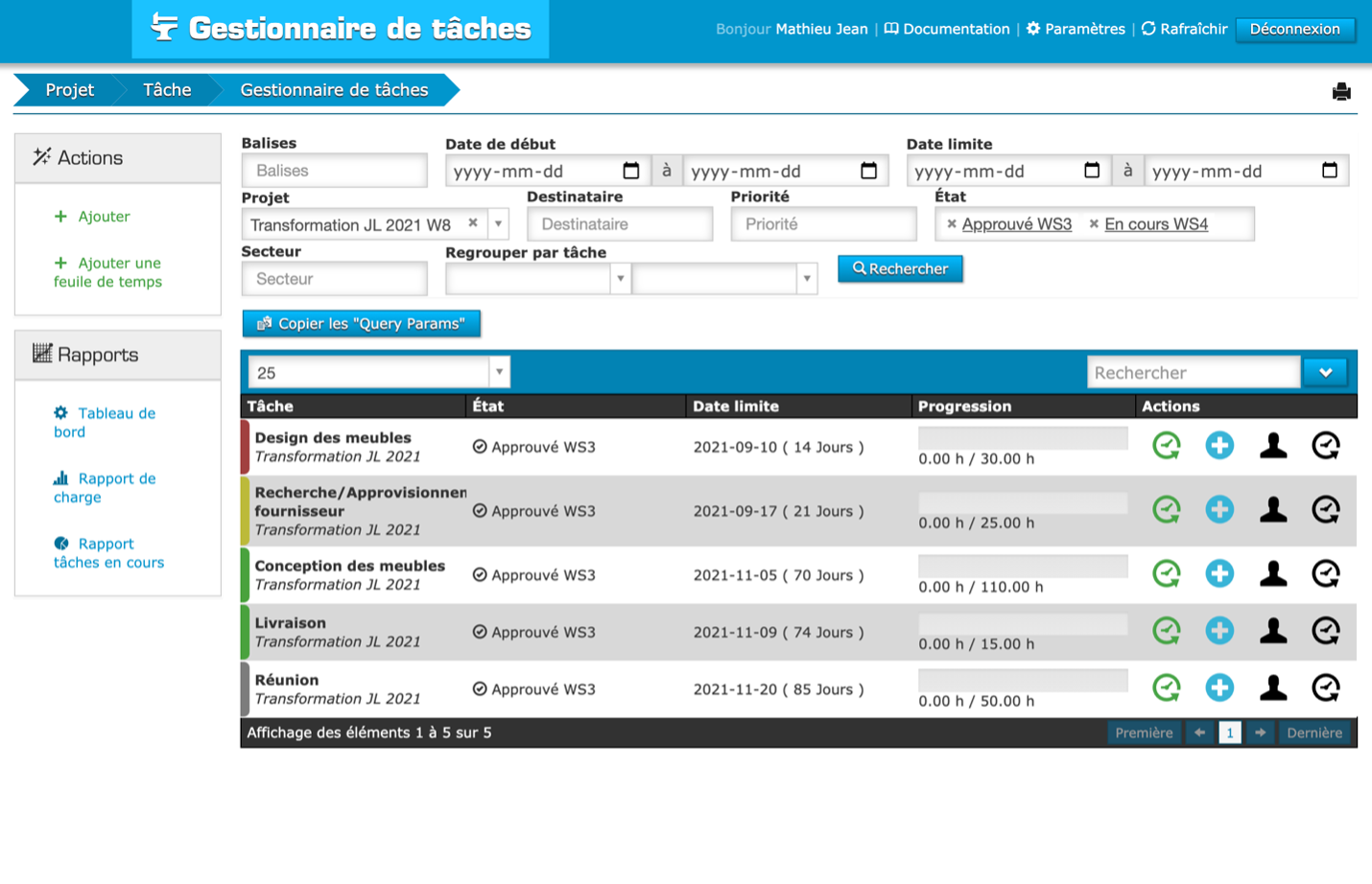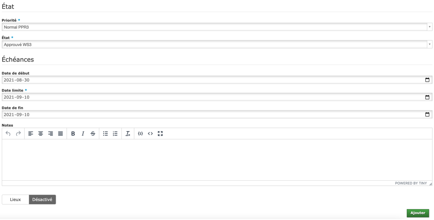 Ensuite, Mathieu définit le niveau de priorité ainsi que les échéanciers.