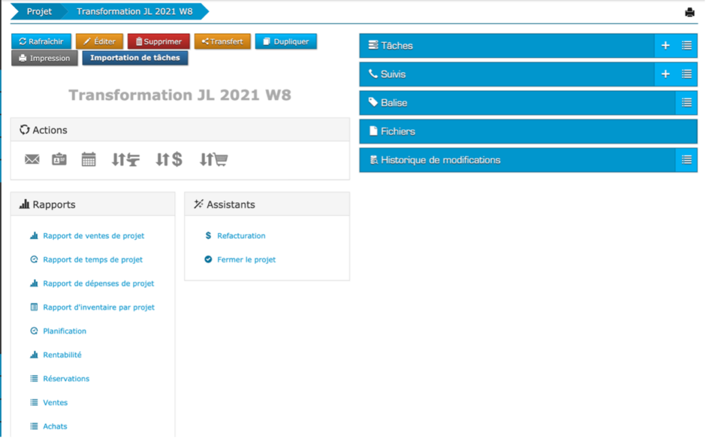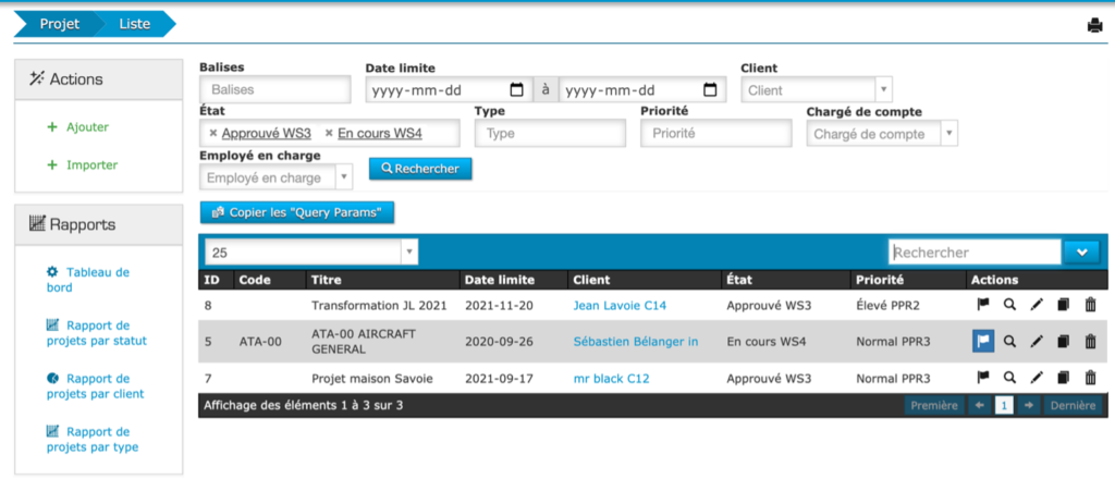 Après des heures de travail acharné étalées sur près de trois mois, Mathieu et son équipe ont réussi à mener à terme la toute première commande de la nouvelle gamme de produits ABC Québec. Mathieu se rend donc dans le logiciel PHPReaction, dans la section « Projets » pour s’assurer de prendre en considération l’ensemble des coûts du projet.