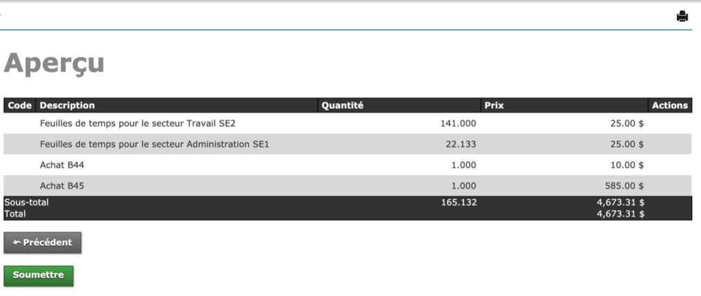 Mathieu sélectionne les achats pertinents et clique sur « Suivant » jusqu’à ce qu’il accède à la page de l’aperçu.
