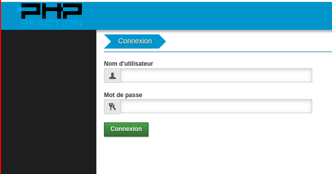 La première étape pour débuter votre utilisation de PHPReaction sera de vous connecter à la plateforme. Pour se faire, vous devrez vous rendre, dans un navigateur web, à l’adresse de votre système.