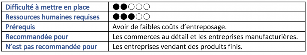 De plus, pour que cette stratégie fonctionne à son plein potentiel, il faudra s’assurer de connaitre les délais de livraison exacts des fournisseurs. Ceci permettra à votre entreprise d’établir des fréquences d’approvisionnement cohérentes afin de ne jamais tomber en rupture.