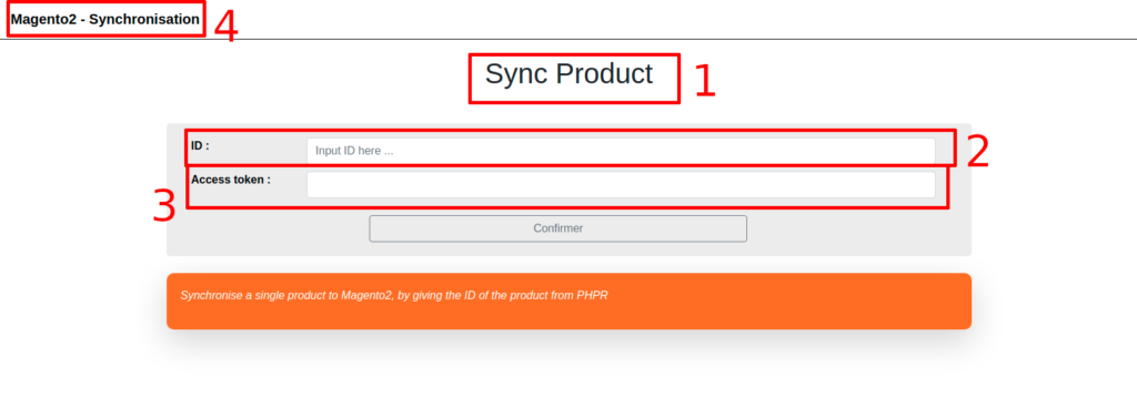 Pour effectuer une synchronisation manuelle, il est à noter que vous aurez besoin d’une clé d’accès (trouvée dans la section « Profil » sur votre plateforme ERP PHPReaction, si toutefois vous avez les droits nécessaires) et vous aurez besoin de l’identifiant unique du produit ou de la vente.