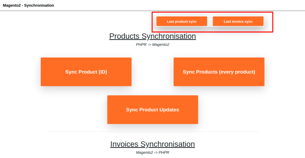 Notre logiciel de synchronisation entre les plateformes PHPReaction et Magento2 comporte, en plus de ses diverses fonctionnalités, une interface pour administrateur afin de manipuler manuellement les diverses opérations, ou bien simplement afin de faire un suivi des synchronisations.