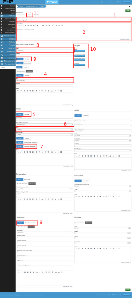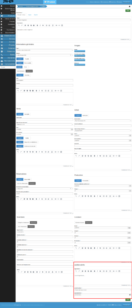 Pour qu’un produit soit synchronisé, il y a des propriétés importantes de produits qui doivent être activées sur votre plateforme ERP PHPReaction …