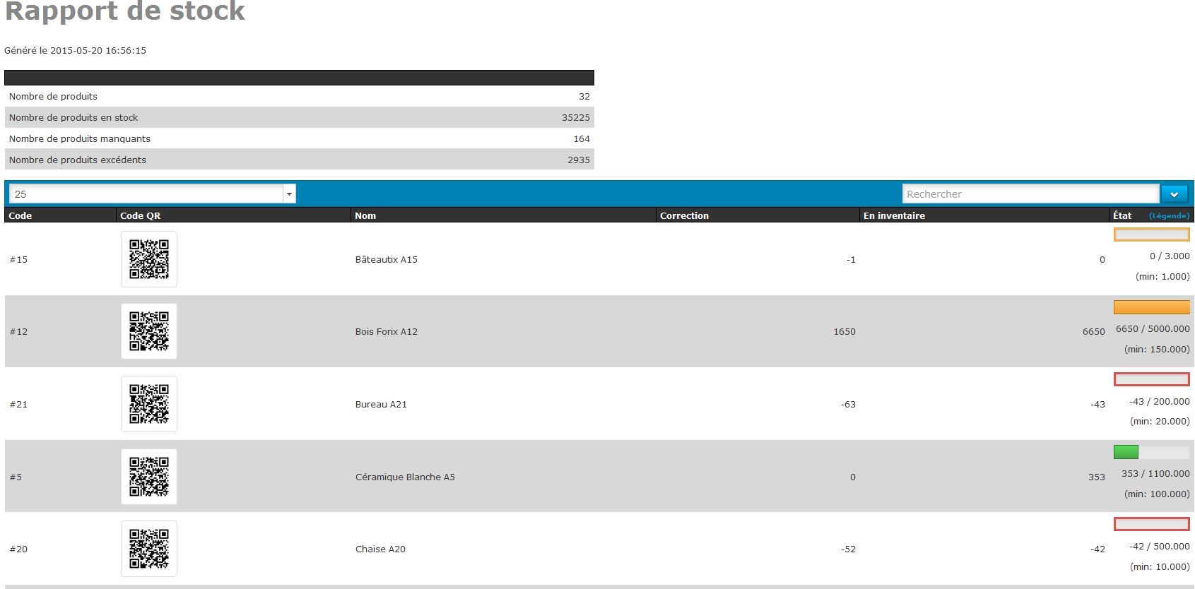 - Vous avez défini pour chaque produit une quantité minimum et maximum que vous désirez en stock.