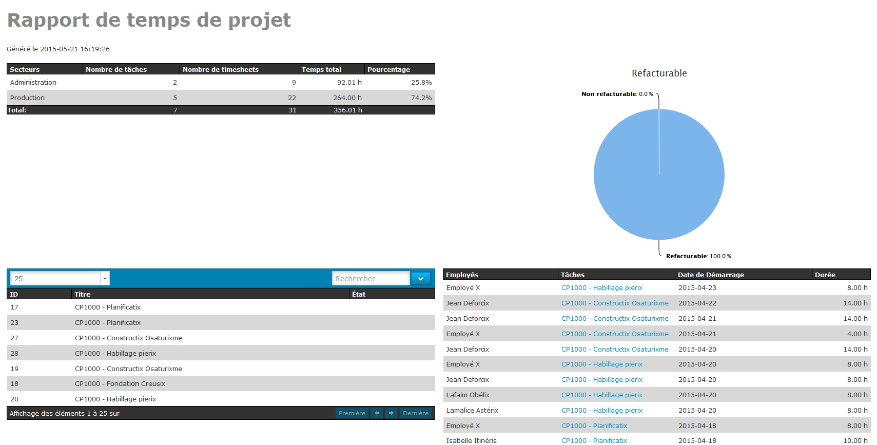 Le rapport de temps permettra, quant à lui, de suivre l’ensemble du temps passé, des tâches travaillées et de faire la différence entre le temps refacturable ou non.