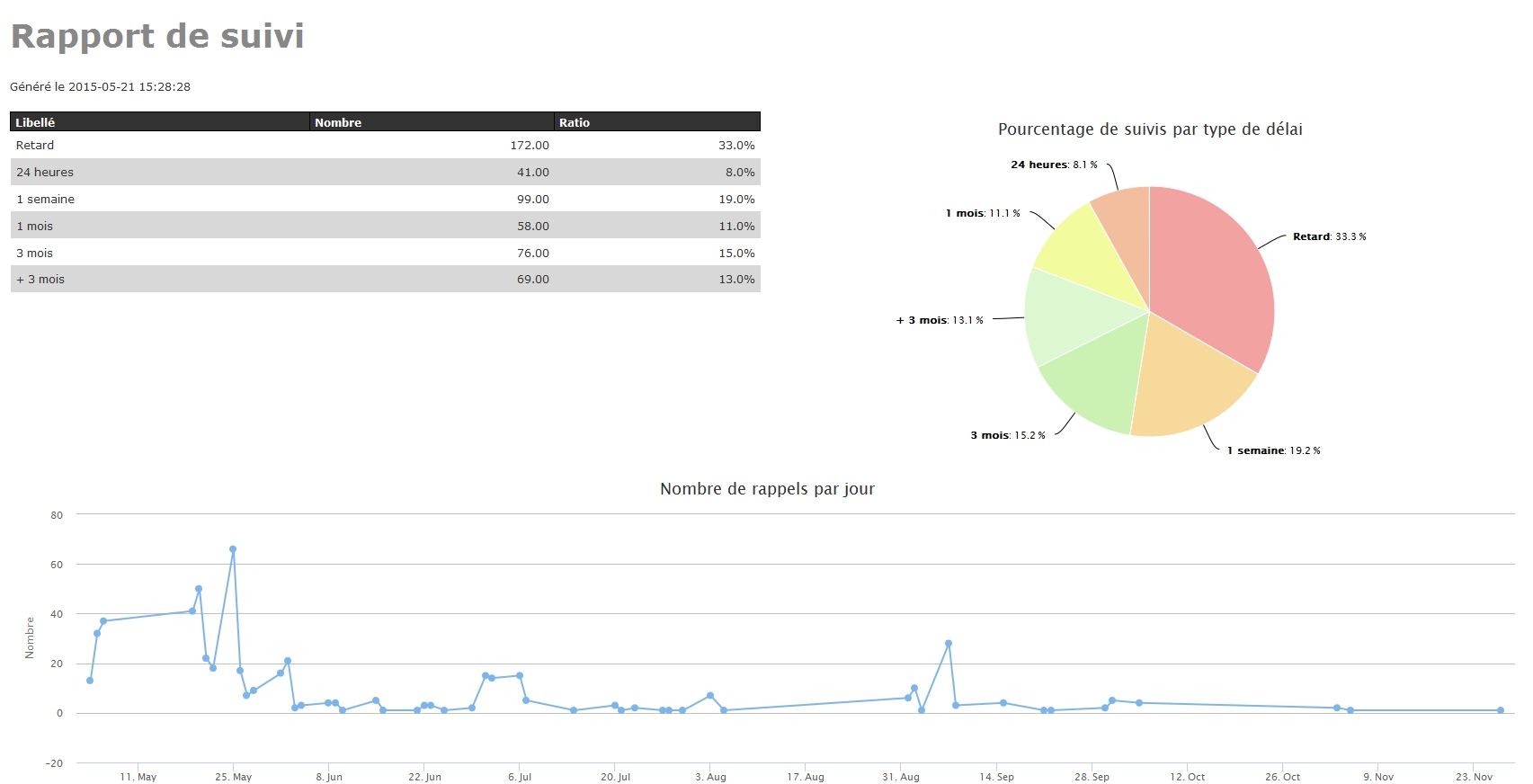 Dans notre exemple, on observe un « peak » de suivis à effectuer le 25 mai. Il faudra prioriser la prospection ce jour-là.